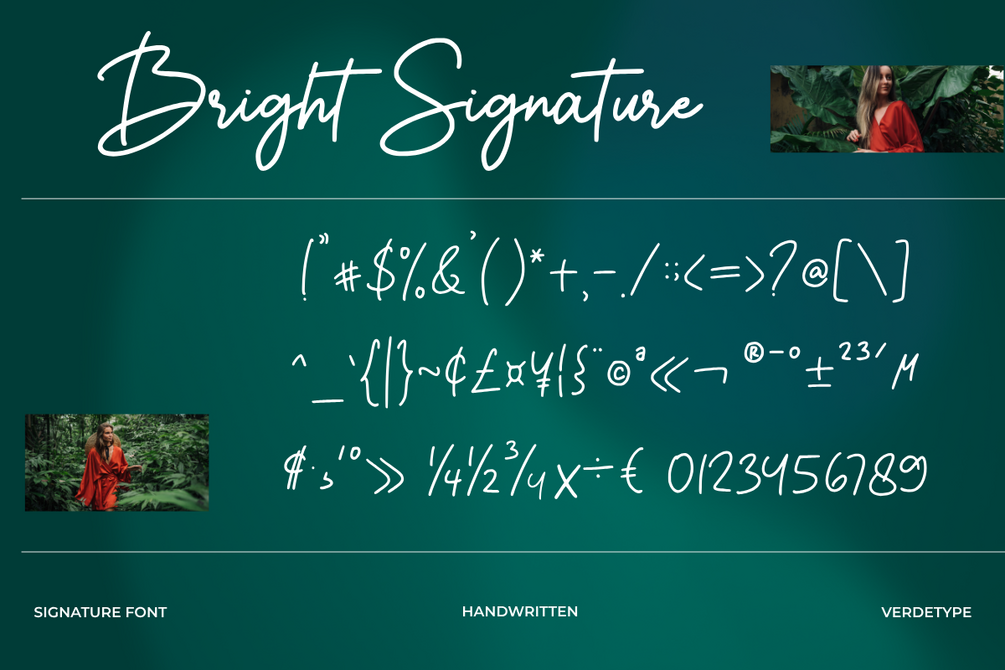 Bright Signature is a handcrafted script font designed to bring a personal, elegant touch to your creative projects. Inspired by natural handwriting and the timeless charm of signatures, this typeface blends fluid strokes with modern sophistication. Whether you're working on branding, wedding invitations, social media posts, or personal stationery, Bright Signature offers a graceful yet approachable style. Its smooth curves and subtle variations mimic the authentic flow of a handwritten note, adding warmth and individuality to every word. With a balance of refinement and playfulness, Bright Signature is perfect for those who want their designs to feel personal, stylish, and unmistakably unique.